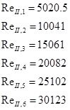 Поскольку первые 4 значения критерия Рейнольдса меньше ReКР1, течение гладкое турбулентное, и: