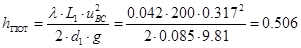 Получим: Hsk1= Hsk2= Hsk3= Hsk4= Hsk5= Hsk6= Рассчитаем потери напора: Для этого найдём значения критерия Рейнольдса для жидкости в первой трубе:
