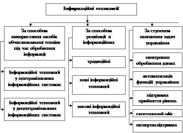 Рис.1. Класифікація інформаційних технологій (продовження) Література1. Шквір В.Д. Інформаційні системи і технології в обліку. Львів, 2009 р. 2. Маслов В.П. Інформаційні системи і технології в економіці: Навчальний посібник – Київ: ”Слово”, 2007 р. 3. Карпенко С.Г., Попов В.В. Інформаційні системи і технології. Київ: МАУП, 2004 р. |