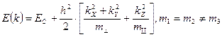 Учет спин-орбитального взаимодействия (тонкой структуры уровней) приводит к тому, что вырождение частично снимается. Связь между энергией и волновым вектором задается формулой: