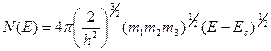 Опыты по циклотронному резонансу дают для компонентов тензора эффективной массы электрона в кремнии следующие значения: m1 =m2 =0,19m0 ; m3 =0,98m0 . В соответствии с тем, что имеется 6 эллипсоидов равной энергии, плотность состояний, которая выражается для одного эллипсоида равенством