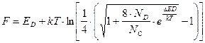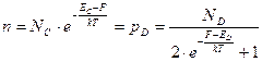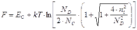Расчет уровня Ферми и концентрации носителей заряда в примесном полупроводнике. Рассмотрим полупроводник, в который введена примесь одного вида, например, донорная. Уравнение нейтральности для такого полупроводника принимает вид