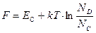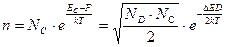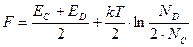 т.е. уровень Ферми лежит посередине между дном зоны проводимости и примесным уровнем. При повышении температуры уровень Ферми повышается, проходит через максимум, а затем опускается. При 2NC =ND уровень Ферми снова находится в середине между EC и ED . Концентрация электронов
