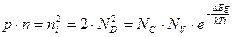Область высоких температур. С ростом температуры концентрация дырок возрастает и может стать сравнимой с концентрацией электронов, тогда уравнение электронейтральности будет иметь вид: Решая это уравнение, получим