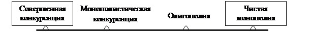 Рисунок 2.6 Положение монополистической конкуренции Экономисты стали рассматривать несовершенные формы конкурентного рынка сравнительно недавно, лишь с 30-х г. ХХ в. 2 Монополистическая конкуренция с дифференциацией продукта – это тип рынка несовершенной конкуренции. В отличие от олигополии этот тип рынка характеризуется множественностью конкурентов . Но все же их несколько меньше, чем в модели совершенной конкуренции. Поэтому в шкале степени власти над ценой монополистическая конкуренция расположена между совершенной конкуренцией и олигополией. 1 Курс экономической теории: Общие основы экономической теории. Микроэкономика. Макроэкономика. Основы национальной экономики: Под ред. А.В. Сидоровича; с.200 2 Курс по экономической теории, Москва, ИНФРА-М, 1997г. с. 208 В чем же сущность монополистической конкуренции? Очевидно, что наличие большого числа конкурентов в отрасли не дает возможности использования эффекта масштаба, на котором основана олигополия, а также взаимозависимого поведения фирм в отрасли. Это ослабляет барьеры вступления в отрасль и усиливает конкуренцию, существенно ослабляя монополистическую власть над ценой. Но пусть и слабая, но власть существует. В данной модели монополизм весьма ограничен большим количеством конкурентов, основан на дифференциации продукта . Дифференцированные продукты – это неоднородные продукты, т.е. одинаковые по сути, но несколько отличающиеся по внешнему виду (вкусу, цвету, форме, упаковке), по консистенции, качеству и т.д. Ярким примером дифференциации продукта в монополистической конкуренции являются безалкогольные напитки: «Лимонад», «Дюшес», «Байкал», и т.д. Принцип технологии и производства один и тот же. Но существуют некоторые нюансы в технологии, создающие отличительные особенности продукта. К тому же один и тот же товар может дифференцироваться по качеству послепродажного обслуживания или обстановке, в которой он продается. Некоторым потребителям, например, в уютном кафе – баре, оформленном под кают – компанию, те же самые напитки кажутся вкуснее, чем просто купленные в магазине. И потребитель согласиться заплатить дороже за сочетание приятного с полезным. Таким образом, посредством дифференциации продукта монополистический конкурент уменьшает эластичность спроса по цене. Повышая цену, монополистический конкурент не лишается все потребителей, как это было бы при совершенной конкуренции. Рынок несколько сузится, но останутся те, кто устойчиво предпочитают продукцию только данного производителя. Таким образом, основными чертами рынка монополистической конкуренции являются: · Товар каждой фирмы, торгующей на рынке (дифференцированный товар), является несовершенным заменителем товара, реализуемого другими фирмами. Дифференциация продуктов возникает из-за различия в потребительских свойствах, качестве, сервисе, рекламе. Часто потребитель платит не только за качество, но и за торговую марку. · На рынке существует относительно большое число продавцов, каждый из которых удовлетворяет небольшую, но и не слишком маленькую долю рыночного спроса на общий тип товара, реализуемого фирмой и ее соперниками. Доля должна быть более 1%. В типичном случае – от 1% до 10% продаж на рынке в течение года. Ни одна из фирм не имеет решающих преимуществ перед другими. · Продавцы на рынке не 