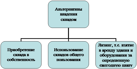 Первый вопрос, который должен быть рассмотрен фирмой при решении проблемы обеспечения складской площадью, – это владение складом. Возможные альтернативы владения складами представлены на диаграмме 1.