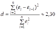 Выполнение данной предпосылки проверяем методом Дарбина–Уотсона. Предварительно ряд остатков упорядочивается в зависимости от последовательно возрастающих значений результата Y