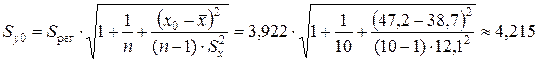 Стандартная ошибка прогноза фактического значенияобъема выпускаемой продукцииy 0 рассчитывается по формуле