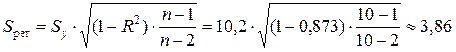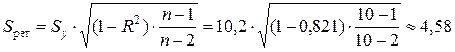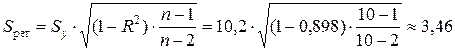 (см. «Дисперсионный анализ » в прил. 1 ). Стандартная ошибка линейной парной регрессии S рег определена там же:
