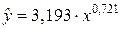 Показатель степени b 1 =0,721 является средним коэффициентом эластичности . Его значение показывает, что при увеличении объема капиталовложений X на 1 % объем выпускаемой продукцииY возрастает в среднем на 0,721 %. Коэффициент детерминации R 2 »0,873 показывает, что степенная модель объясняет 87,3 % вариации объема выпускаемой продукции Y . F -статистика степенной модели