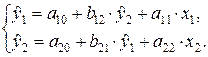 Коэффициенты приведенной формы имеют следующие значения:d 10 »19,90; d 11 »2,821; d 12 »0,394; d 20 »19,14; d 21 »1,679 и d 22 »1,181 (см. прил. ). Таким образом, приведенная форма системы уравнений имеет вид: