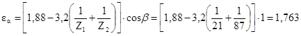 3.3.10 Визначаю коефіцієнт торцевого перекриття 3.3.11 Осьовий крок перекриття дорівнює 3.3.12 Визначаю коефіцієнт осьового перекриття 3.3.13 Сумарний коефіцієнт перекриття 3.3.14 Еквівалентні числа зубів передачі