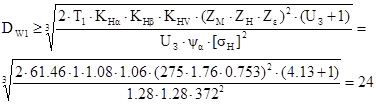 3.2.12 Підставляю отримані значення у вихідну формулу і визначаю мінімальний діаметр початкового кола шестірні: