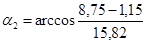 α1 вибирається з методички в у межах 12–200 , а – відстань від нижнього шарніра стріли до осі обертання крана (визначається графічно). Визначимо кут підйомустріли при найменшомувильоті
