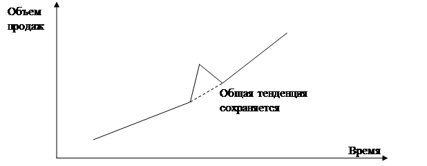 Рис. 1.5. Ускоренное падение сбыта продукта [8, с. 378] Если же, напротив, наблюдается тенденция к росту продаж, то стимулирование сопровождает, а иногда и усиливает ее (рис. 1.6).
