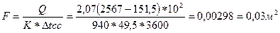 9. Площадь поверхности теплопередачи определяем по формуле:
