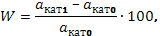где S – площадь поперечного сечения поры; h – высота капиллярного падения жидкости; П – периметр поры; Θс – угол смачивания между твердым веществом и жидкостью 1400 для ртути; σ=480∙10-2 Н/м (для ртути) – поверхностное натяжение. Отношение площади поперечного сечения пор S к периметру П представляет собой гидравлический радиус пор, который всегда равен половине эквивалентного радиуса поры при сечении любой формы: (14) где Рприв =Рм +Рнач -∆Р – приведенное давление, МПа; Рм – манометрическое давление, Рнач – начальное давление, ∆Р – уменьшение давления столба ртути в капилляре дилатометра. Пористую структуру твердых тел по этому методу исследуют на установке, состоящей из поромеров низкого (для определения объема наиболее крупных пор) и высокого давления (для определения объема пор размером от 3 до 6000 нм). Приборы позволяют замерить эквивалентные радиусы пор от 2,5 до 35000 нм. 2.6. Определение истинной и кажущейся плотности катализатора Суммарный удельный объем катализатора (см3 /г) можно рассчитать по истинной (масса единицы объема собственно твердого материала без учеба объема пор) и кажущейся плотностям катализатора: (15) Наиболее распространен пикнометрический способ определения истинной плотности твердых тел. В качестве пикнометрической жидкости используют бензол, этиловый спирт, воду и другие растворители. Для определения пикнометр с бензолом термостатируют, затем взвешивают пикнометр с бензолом и без него. После этого определенную навеску образца заливают в пикнометре до метки бензолом и кипятят при 80-90 0 С. Во время кипячения воздух удаляется из пор, и они заполняются бензолом. Далее в пикнометр добавляют бензол до метки, снова термостатируют и взвешивают. Истинную плотность рассчитывают по формуле: (16) где А – масса пикнометра с бензолом, г; В – масса пикнометра с навеской и бензолом, г; 0,879 – плотность бензола при 20 0 С, г/см3 . Кажущаяся плотность – масса единицы объема твердого материала, включая объем пор. Для ее определения навеску образца помещают в предварительно взвешенный прибор и откачивают воздух из образца. Остаточное давление замеряют вакуум манометром. Далее ртутью заполняют образец и она вдавливается в поры под атмосферным давлением. После чего прибор очищают от ртути и взвешивают. кажущуюся плотность рассчитывают по формуле: (17) где А – масса прибора с ртутью, г; В – масса прибора с образцом и ртутью, г; 13,54 – плотность ртути при 20 0 С, г/см3 . Суммарную пористость катализатора определяют с помощью водопоглощения W (% от массы образца):