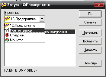Рисунок 10 – Окно запуска программы 1С:Предприятие Далее нужно будет выбрать режим. Нам потребуется конфигуратор.