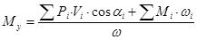 определяем уравновешивающую силу Ру V – линейная скорость точки к которой приложена уравновешивающая сила, в нашем случае это скорость VA =1,45 м/сек (определено расчетом выше) Pi и Mi уравновешивающие сила и момент в l i точке Vi – линейная скорость i-ой точки ωi – угловая скорость i-ой точки αi – угол между направлением силы Pi и скоростью Vi Ведущее звено (кривошип) имеет вращательное движение и уравновешивающий момент определяется из формулы: