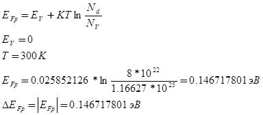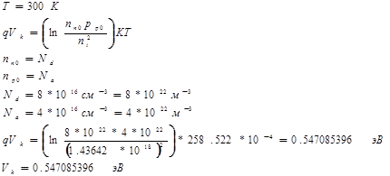 перехода при температуре Т=300К. Полагая , что примесь полностью ионизирована, считать Концентрация неосновных носителей найти из закона действующих масс в