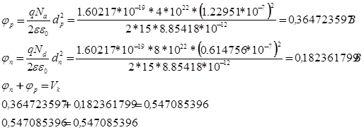 График 6. 14. Найти падение потенциала в p - n -областях пространственного заряда p - n -перехода
