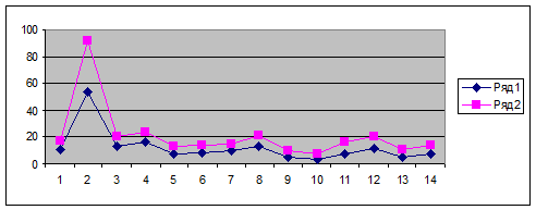 По результатам данной методики можно говорить о хорошем самочувствии, настроении и высокой работоспособности при прохождении процедуры тестирования. 5. Экспертная оценка эффективности консультантов ТД проходила в конфиденциальной форме. Тест заполнялся консультантами и руководителями служб анонимно. Контент-анализ проводился по «Книге статистического учета звонков» за 1 месяц. За 1 мес. на разных Телефонах доверия количество звонков в среднем насчитывается более 500. В данном исследовании подсчитывалась частота запросов консультанта, а также положительные отзывы и благодарности от абонентов. Таблица 4. Средние значения эффективности консультантов ТД