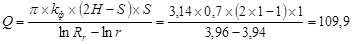 гдеk ф – коэффициент фильтрации, м/сутки; Н – мощность водоносного слоя,м; S – величина проектируемого понижения уровня грунтовых вод, м, (пониженный уровень грунтовых вод должен быть на 0,5 м ниже дна котлована); Rr – радиус действия группы иглофильтров, м, равный
