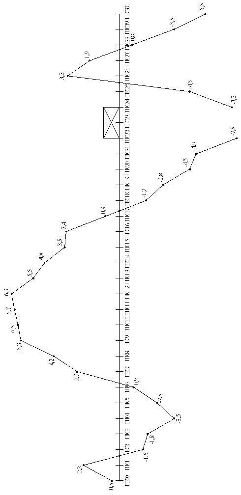 где Х - расстояние от пикета до нулевой точки, м. L - расстояние между пикетами, 100 м. Н1 и Н2 – рабочие отметки. ПК2-3