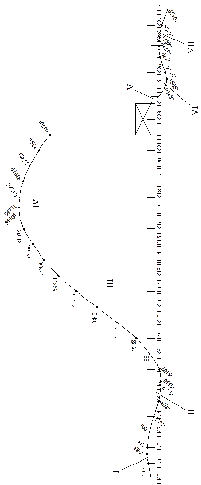 Содержание 1. Возведение земляного полотна при помощи землеройных и знмлеройно-транспортных машин 1.1. Введение 1.2. Характеристика участка 1.3. Определение местоположения нулевых точек 1.4. Выбор типового поперечного профиля 1.5. Определение объемов земляных работ 1.5.1. Определение объемов с учетом косогорности 1.6. Распределение земляных масс и определение средней дальности возки грунта на участках 1.6.1. Построение кривой объемов 1.6.2. Определение границ участков с продольным и поперечным перемещением грунта 1.7. Выбор ведущих машин для производства работ 1.7.1. Расчет производительности ведущих машин 1.8. Выбор автотранспортных средств 1.9. Расчет количества транспортных средств 1.10. Выбор рациональных технологических схем работы машин 1.11. Организация труда при производстве земляных работ 1.12. Проектирование календарного плана земляных работ 1.13. Технико-экономические показатели производства земляных работ 1.14. Техника безопасности при сооружении земляного полотна 1.15. Список использованной литературы. Приложение А 1.1. Введение Наиболее трудным процессом при строительстве новой ж.д. линии является возведение земляного полотна, которое сооружается в самых разнообразных, часто очень не благоприятных гидрометеорологических условиях в ограниченные сроки. Земляное полотно железной дороги относится к постоянным земляным сооружениям, является одним из важнейших элементов пути и служит основанием для его верхнего строения. К качеству земляного полотна предъявляются повышенные требования при подготовке оснований и производстве земляных работ. Земляное полотно должно быть прочным и устойчивым, воспринимать проектные, постоянные и временные нагрузки, противостоять действию выветривания и воды. Технологический процесс сооружения земляного полотна представляет собой сложный комплекс, включающий ряд работ, для выполнения которых применяются различные машины. Правильный выбор способа производства работ и ведущих машин влияет на технико-экономические показатели, качество и сроки производства работ. Современный парк машин представлен широкой номенклатурой, позволяющей применять различные машины для выполнения одних и тех же процессов. Выбранные комплекты машин должны обеспечить выполнение работ в заданные сроки при условии внедрения комплексной механизации, современной техники и прогрессивных способов производства работ, создания условий для повышения производительности труда и получения наилучших технико-экономических показателей. 1.2. Характеристика участка Задан участок однопутной железнодорожной линии протяженностью 3км, являющийся частью железнодорожной линии II категории. Вид грунта – глина. Поперечный однообразный уклон местности располагается на пикетах 17 – 21 с уклоном 1:5. На участке с 25 по 27 ПК расположен мост протяженностью 200 метров. 1.3. Определение местоположения нулевых точек Расстояние от ближайшего пикета до нулевой точки определяется из подобия треугольников. Определение местоположения нулевых точек: