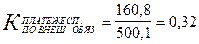 Это означает, что собственный капитал составляет на начало года 24%, а на конец года только 2% от общей суммы средств ЗАО, что является очень низким показателем. Так же мы можем рассчитать коэффициент платежеспособности по внешним обязательствам по формуле: