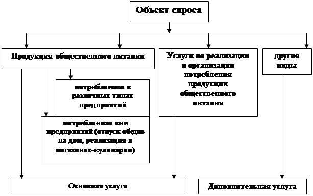 Рис. 1 - Взаимосвязь функций и услуги общественного питанияСхематично спрос в общественном питании представлен на рис. 2.