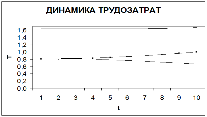 (Данное соотношение отражено в таблице 2.1) Мы видим ,что значение отношения убывает => реализуется убывающий тип отдачи дополнительных затрат овеществленного труда. 3. Уровень технологии технологического процесса . В нашем техпроцессе мы обнаруживаем ограниченный путь развития, который называется рационалистическим. Он связан с уменьшением затрат живого труда за счет роста затрат прошлого труда. Вместе с тем живой труд уменьшается в большей степени, чем возрастет прошлый труд. Рационалистическое(эволюционное) развитие с экономической точки зрения всегда предпочтительнее, чем путь эвристического (революционного) развития технологического процесса. Это связано с дополнительными затратами на научно-исследовательские, работы при эвристическом совершенствовании технологии. Однако путь рационалистического развития принципиально ограничен.Рассчитаем параметры технологического процесса L , B , Y для момента времени t=3. Воспользуемся моделью рационалистического развития техпроцесса. L