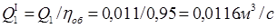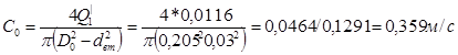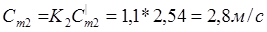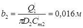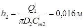 Меридиональная составляющая скорости потока при выходе из колеса без учета стеснения сечения по формуле.