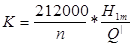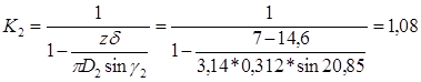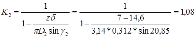 Поправочный коэффициент на влияние конечного числа лопаток по формуле.