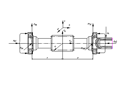 Рис.7. Расчетная схема опор приводного вала. Окружное усилие на барабане