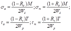 Амплитудные и средние значения нормальных и касательных напряжений определяют по зависимостям