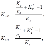 Коэффициенты перехода от пределов выносливости образца к пределу выносливости деталей находят по формулам: