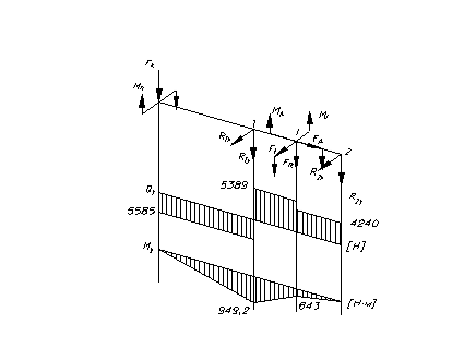 Статическая прочность вала в выбранном сечении обеспечена. Расчет приводного вала на статическую прочность. Расчетная схема и эпюры приведена в Приложении 3. На основании эпюр моментов предположительно опасными являются сечения 1.
