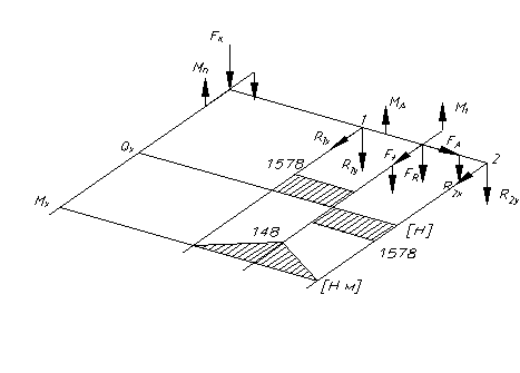 Рассчитаем статическую прочность тихоходного вала в сечении 1 Наибольшее значение изгибающего моментов