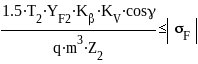 17 2. РАСЧЕТ ЧЕРВЯЧНОЙ ПЕРЕДАЧИ 2.1. Исходные данные для расчета: а) вращающий момент на валу червячного колеса T2=284.461 Нм; б) передаточное число U=40.724; в) скорость вращения червяка n1=700 об/мин; г) вращающий момент на валу червячного колеса при кратковременной перегрузке Т2пик = 1.3Т = 1.3284.461 = 369.8 (Нм) д ![]() ) циклограмма нагружения (рис.2.1.) Рис.2.1. 2.2. По известному значению передаточного числа определяем число витков (заходов) червяка и число зубьев колеса: Принимаем Z2=40, следовательно, Uф=Z2/Z1=40/1=40 2.3. Выбор материала. Ожидаемая скорость скольжения: По таблице 26 из [2] с учетом V`s выбираем материал венца червячного колеса: БрА9ЖЗЛ 2.4. Расчет допускаемых напряжений. Для колес из бронзы, имеющей предел прочности В>300 МПа, опасным является заедание, и допускаемые напряжения назначают в зависимости от скольжения Vs без учета количества циклов нагружения. В нашем случае (по таблице 27 из [2]) в зависимости от материала червяка и скорости скольжения без учета количества циклов нагружения принимаем [H]2=173 МПа. Определим вращающие моменты на валах: Т21 = 1.3ТН = 1.3284.461 = 369.8 (Нм); Т22 = ТН = 284.461 (Нм); Т23 = 0.3ТН = 0.3284.461 = 85.338 (Нм); Определим срок службы передачи (в часах): 2.5. Предварительное значение коэффициента диаметра. 2.6. Ориентировочное значение межосевого расстояния. где K - коэффициент неравномерности нагрузки; KV – коэффициент динамической нагрузки. В предварительных расчетах принимают произведение KKV=1.1…1.4 , мы примем это произведение равным 1.2 T2 – вращающий момент на валу червячного колеса, Нм. 2 Значение модуля и коэффициента диаметра согласуется по рекомендации ГОСТ 2144-76 (таблица 28 [2]) с целью уменьшения номенклатуры зуборезного инструмента. Принимаем m = 5.0 и q=10 2 Округляем его до ближайшего стандартного значения из ряда: …100;125;160… Принимаем aw = 125мм. 2 2.10. Проверочный расчет по контактным напряжениям. 2.10.1. Угол подъема витка червяка. 2.10.2. Скорость относительного скольжения в полюсе зацепления, м/с. г 2.10.3. По скорости скольжения VS выбираем (по таблице 29 [2]) степень точности передачи (8 степень) и определяем коэффициент динамической нагрузки KV=1.25 Коэффициент неравномерности нагрузки. г Ti и ti – вращающий момент и время его действия на i-той ступени по гистограмме нагружения; Т2ср – среднее значение вращающего момента на валу червячного колеса; Т2max– максимальный из числа длительно действующих вращающих моментов. Т2max = 284.461 (Нм) Т 2.10.5. Расчетные контактные напряжения. 2.11. Проверочный расчет по напряжениям изгиба. Эквивалентное число зубьев колеса. Коэффициент формы зуба колеса выбираем по таблице 31 [2] : Напряжения изгиба в зубьях червячного колеса.