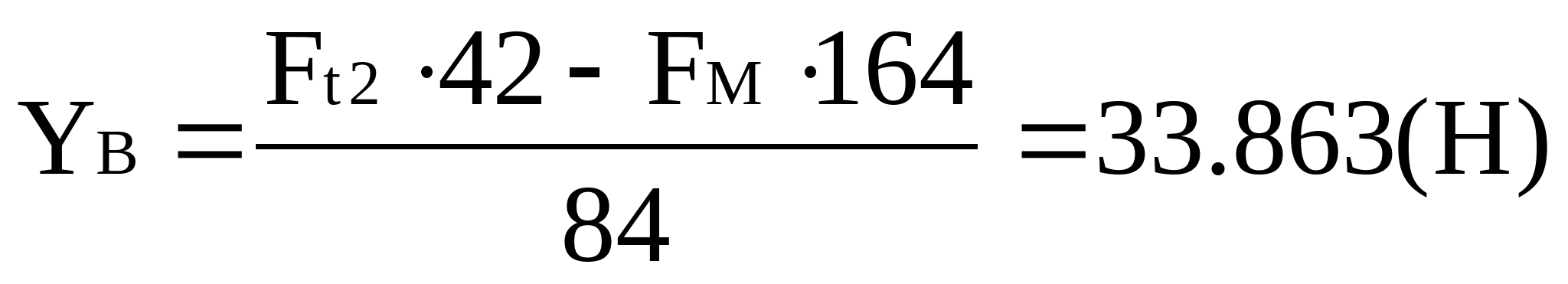 Выбираем Х = 0.4 и Y = 0.92 (по рекомендациям [4]) Рассчитаем приведенную нагрузку первого подшипника P1 = (VXFr1 + YFa1)KбKт , где Kб = 1.3 – коэффициент безопасности (по таблице 6.3 [4]); KТ = 1.0 – температурный коэффициент (по таблице 6.4 [4]); Х – коэффициент радиальной нагрузки; V – коэффициент вращения относительного вектора нагрузки внутреннего кольца подшипника. P1 = (0.41898 + 0.9228844.61)1.31.0 = 3860 (H) Р m Lh тр = 9460.8 ч – требуемая долговечность. Lh1 > Lh тр , подшипники удовлетворяют поставленным требованиям. 7.2. Подшипники для выходного вала. Для вала червячного колеса примем подшипники роликовые конические 7208 легкой серии. Из таблицы 19.24 [4] выписываем: в = 40 мм, в = 80 мм, Т = 19.25 мм, e = 0.38, С = 46500 Н. Из условия равновесия вала: о о П олные радиальные реакции опор