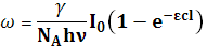 Поглощённую энергию E можно выразить через другие величины. По закону Ламберта – Бера интенсивность I светового потока после прохождения через слой вещества толщиной l равна (2.13) где (2.14) Подставляя формулы, получим наиболее общее выражение для скорости фотохимической реакции:
