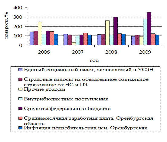 - Сравнение темпов роста доходов УСЗН с темпами роста средней заработной платы населения и инфляцией. Таблица 2.7 Сравнение темпов роста доходов УСЗН Советского р-на г.Орска с темпами роста средней заработной платы населения и инфляцией