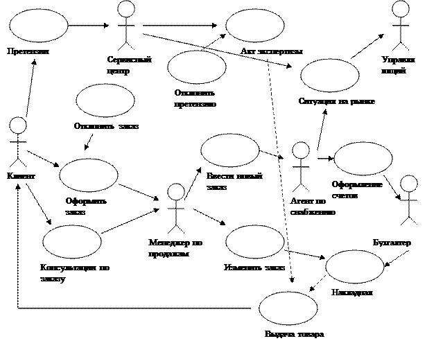 2.2.3.Диаграмма действий. Показывают выполнение операций. Предназначение данной диаграммы – показать поток управления, внутренний для операции. Диаграмма действий разделена на 2 полосы, которые включают в себя определенный набор действий и переходов. Каждая полоса имеет свое имя: клиент и менеджер по продажам, и тем самым позволяет группировать действия в единое целое. Графически каждая полоса представляет собой вертикальное разделение диаграммы с помощью сплошной полосы. Каждое действие может находиться только в одной полосе, а переходы могут пересекать полосы.