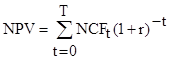 В финансовых решениях, связанных с оценкой и принятием или отклонением инвестиционных проектов, превалируют соображения стратегического характера. Подобным проектам характерны следующие особенности: 1.значительные объемы затрат и ожидаемых выгод; 2.соответствующие затраты и выгоды «растянуты» во времени, т.е. они охватывают продолжительный период, и потому при их оценке должен учитываться фактор времени; 3.как правило, в крупном инвестиционном проекте должны приниматься во внимание выгоды не только экономические, но и социальные, причем соотношение между ними зависит от сути собственно инвестиционного проекта; 4.любой инвестиционный проект, как правило, имеет существенное значение для организации в целом; 5.необходим учет риска. Поэтому критерии, используемые для финансовой оценки подобных решений, должны по возможности отражать указанные особенности. Динамические методы инвестиционных расчетов используются для обоснования инвестиционных расчетов по долгосрочным проектам с меняющимися во времени доходами и расходами. В основе их применения лежат определенные условия и предпосылки, выполнение которых обеспечивает как возможность применения самих расчетов, так и возможность получения достоверных результатов. Среди этих условий выделим следующие: 1.Рассматривается долгосрочный инвестиционный проект, имеющий жизненный цикл несколько лет (или периодов, если в качестве единицы периода выбран срок менее одного года). 2.Любой инвестиционный проект представляет собой платежный ряд, элементами которого являются сальдо доходов и расходов инвестора (чистые денежные потоки) за каждый период времени NCF (netcashflow):