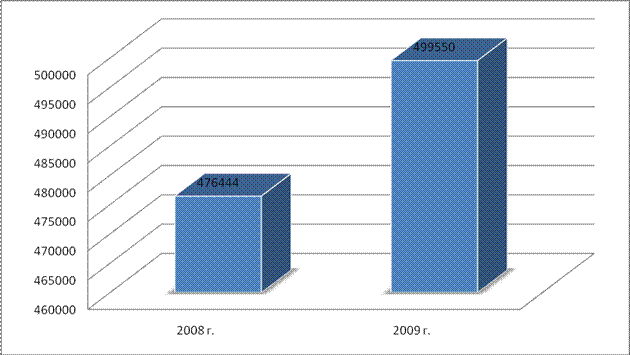 Рис. 2.6. ЕНВД, администрируемый Управлением ФНС по Тульской области, зачисляемый в бюджет Федерального фонда обязательного медицинского страхования за 2008 – 2009 г.г., тыс. руб. Из рис. 2.7. видно, что за 2009 год поступления от ЕНВД, зачисляемого в территориальный фонд обязательного медицинского страхования увеличились на 1 154 тыс. рублей.