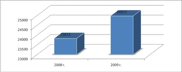 Из рис. 2.4. видно, что поступления ЕНВД, зачисляемого в бюджет Тульской области за 2009 год увеличились на 23 106 тыс. рублей по сравнению с аналогичным периодом 2008 года.