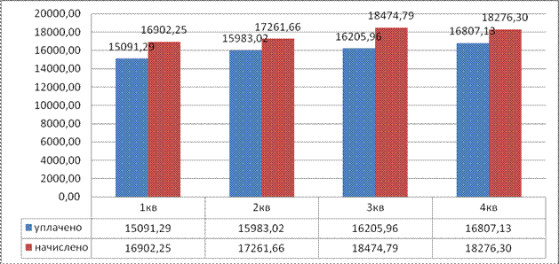 Анализ поступлений ЕНВД в бюджетную систему проводится на основании данных отчета ф.№1-НМ «Отчет о начислении и поступлении налогов, сборов и иных обязательных платежей в бюджетную систему Российской Федерации» [30]. Отчет ф.№1-НМ позволяет соотнести фактические налоговые поступления с суммами налога, начисленным по декларациям, тем самым определив коэффициент собираемости, как отношение фактических налоговых поступлений к начисленной сумме соответствующего налога. Из таблицы 2.3. видно, что поступления ЕНВД в 2008 г. составляли 70 994,08 тыс. рублей, начисления соответственно 79 528,48 тыс. рублей. Исходя из данных таблицы 2.3. коэффициент собираемости ЕНВД в 2008г. составил 89,26%. Графическое отображение динамики показателей таблицы 2.3 представлено на рис. 2.8.