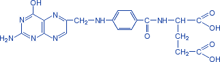 Показания.Показания к применению: · В6 -гиповитаминоз · токсикоз беременных · анемии · лейкопении различной этиологии · заболевания нервной системы (паркинсонизм, малая хорея, болезнь Литтла, радикулиты, невриты, невралгии) · болезнь Меньера · морская и воздушная болезнь · острые и хронические гепатиты Имеются данные об эффективности пиридоксина при атеросклерозе и сахарном диабете (снижает содержание гликозилированного гемоглобина), кроме того, пиридоксин действует как диуретик, помогая снижать повышенное кровяное давление, таким образом защищая сердечно-сосудистую систему сразу нескольким способами. В ряде исследований пиридоксин показал свою эффективность при депрессиях: он положительно влияет на выработку норэпинефрина и серотонина. Витамин B9 (фолиевая кислота, витамин BС )N-{4'-[(2-амино-4-окси-6-птеридил)-метил]-аминобензоил}-L(+)-глутамииовая кислота