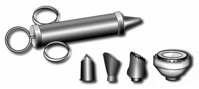 Рис. 2 Кондитерский шприц и насадки к нему.